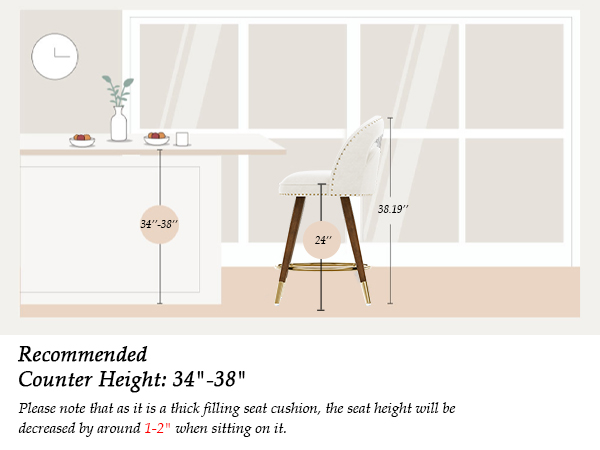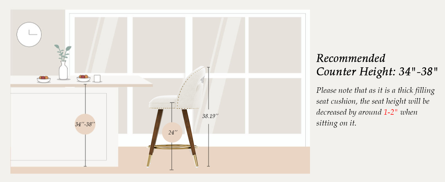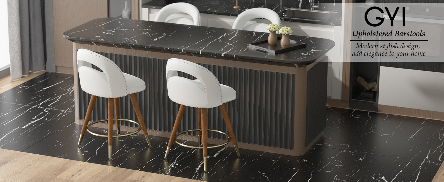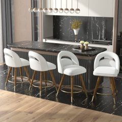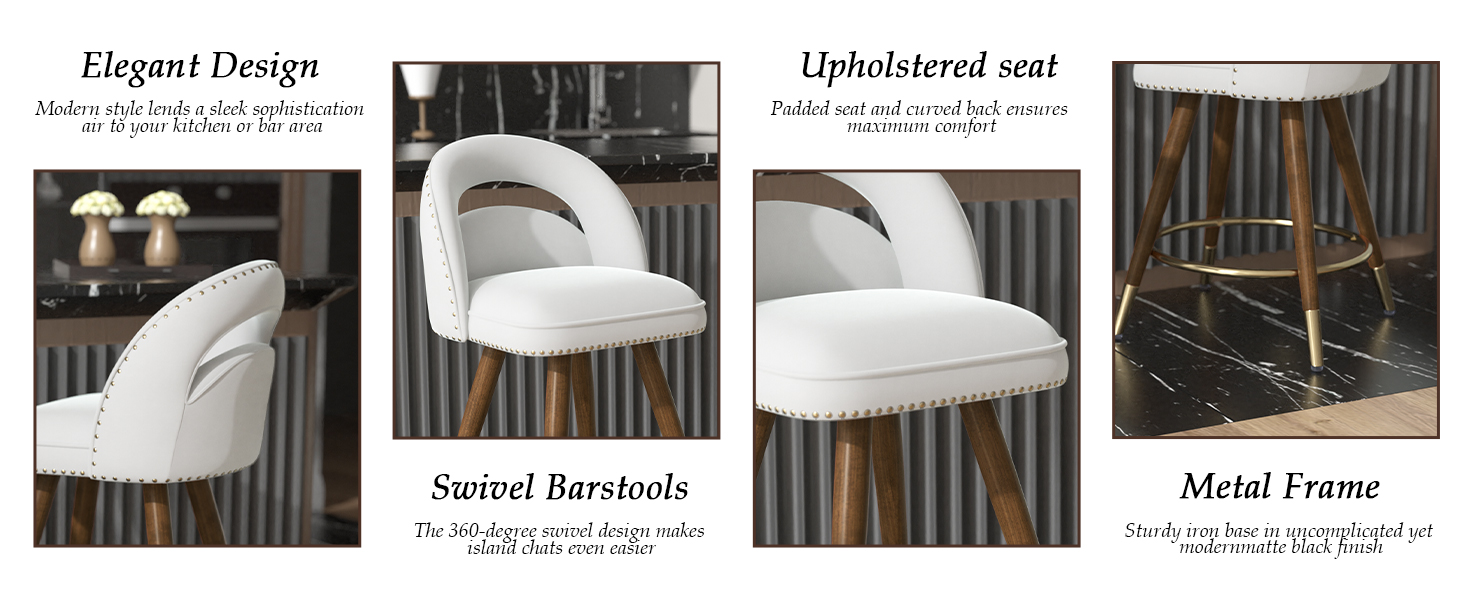 Effortless 360° swivel bar stools with plush velvet cushions, elegant solid wood legs & footrests, and easy tool-free assembly—perfectly sized (24″ seat height) for 34-38″ counters (300lb).